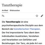 Nội dung bài viết dưới đây dựa vào tư liệu của bộ môn Tanztherapie của Đức. Đây là một môn học có đào tạo trường lớp chính qui, có bằng cấp hành nghề như nghề Y (Y học bổ sung, Y học tự nhiên không dùng thuốc). Đào tạo nghề nghiệp trong 3 năm, hành nghề có sự bảo trợ và thanh toán từ các hệ thống Bảo hiểm Y tế. Tuy vậy các chuyên viên trị liệu chuyên nghiệp khá ít. Hiện nay bệnh nhân muốn được thăm khám, tư vấn và hướng dẫn tập luyện theo liệu pháp Nhảy trị liệu/ Tanztherapie phải đặt lịch khá lâu và phải chờ đợi theo danh sách đăng ký. Riêng tại các Trung tâm Onkologie (Ung thư học), các bệnh viện Tâm thần, các Trung tâm phục hồi chức năng thì Tanztherapie được thục hiện bắt buộc trong liệu trình trị bệnh. (Có thể đây cũng là một hướng lựa chọn nghề nghiệp cho các bạn trẻ muốn thay đổi nghề nghiệp ở Đức khá thú vị)